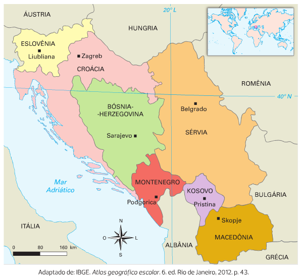 Mapa dos países resultantes da antiga Iugoslávia